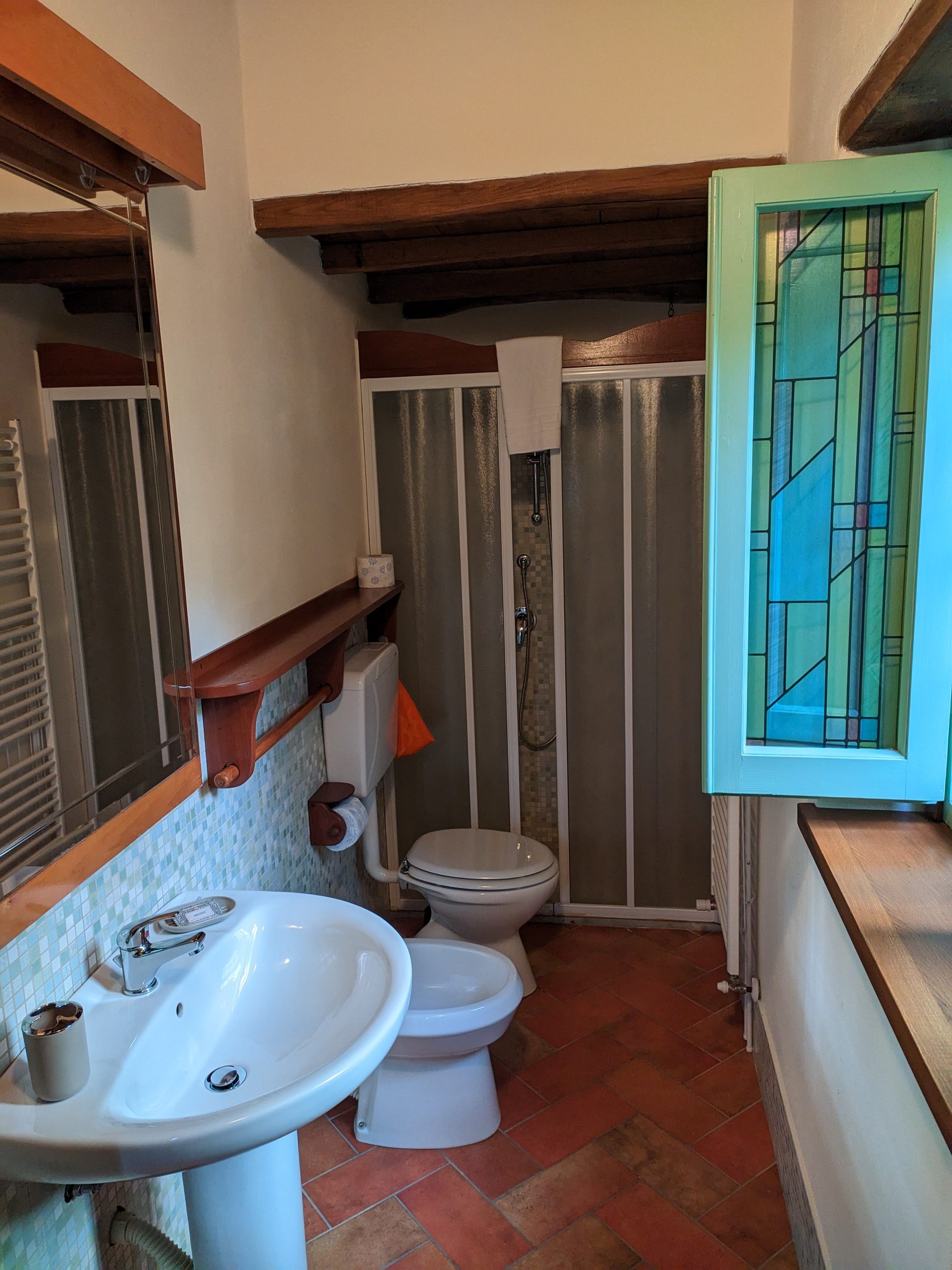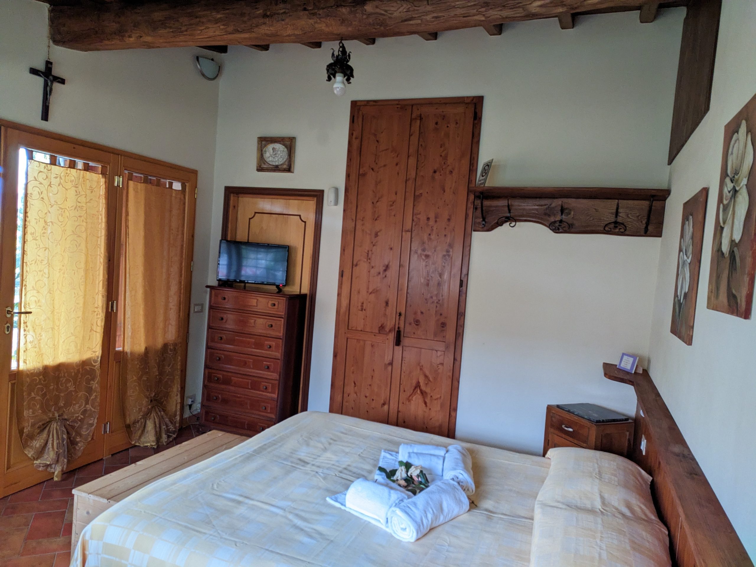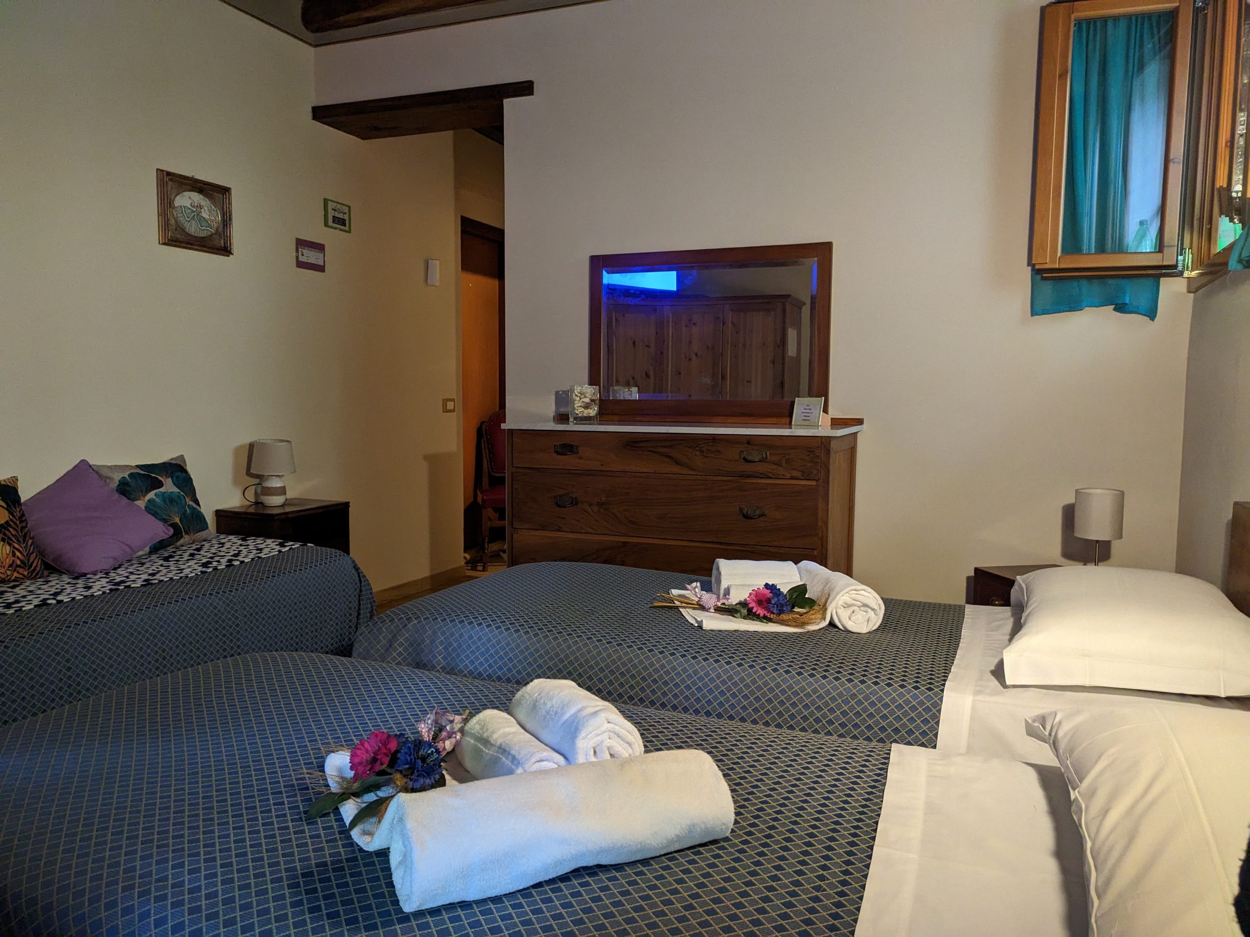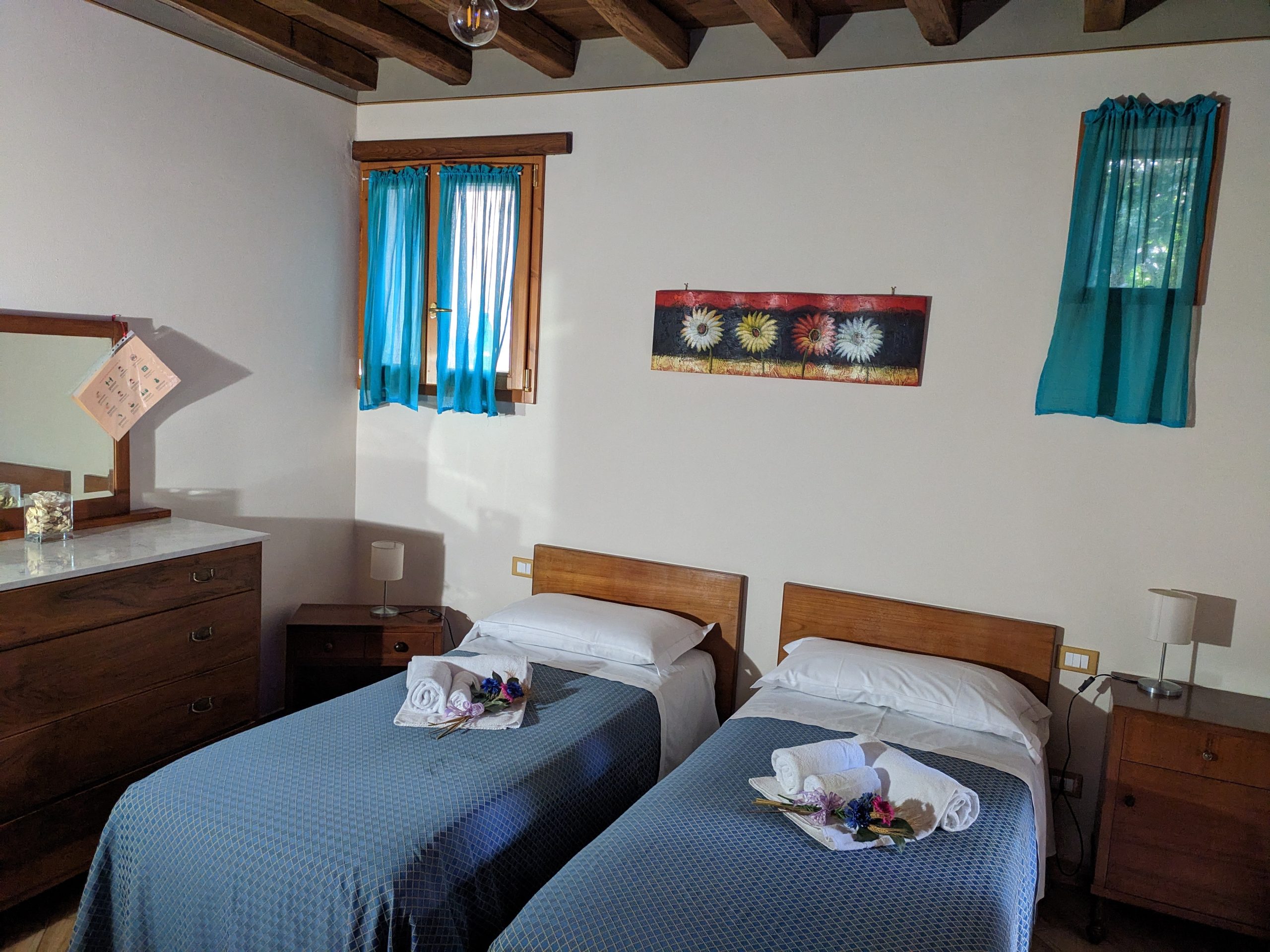 Situata al piano terreno e con ingresso indipendente, la camera è configurabile, a richiesta, come matrimoniale o con letti separati.